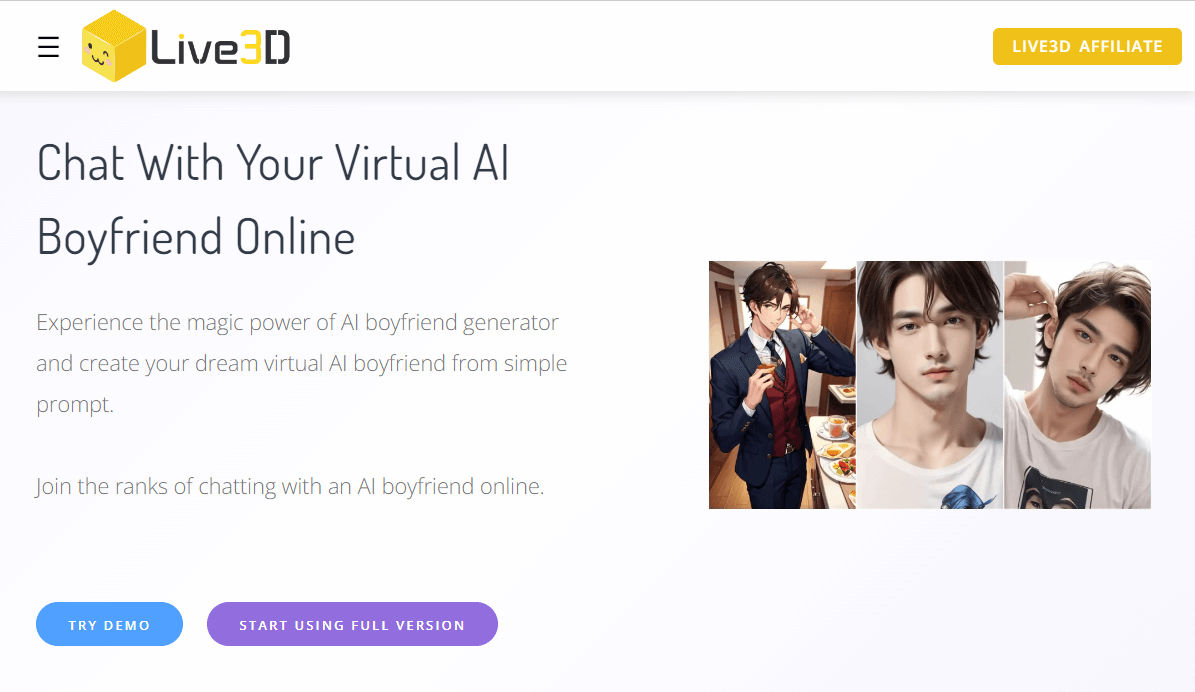 Live3D’s AI Boyfriend features customizable 3D models and engages in natural conversations. It offers a personalized experience by expressing emotions and responding to user cues, making it a standout in the AI companion market.