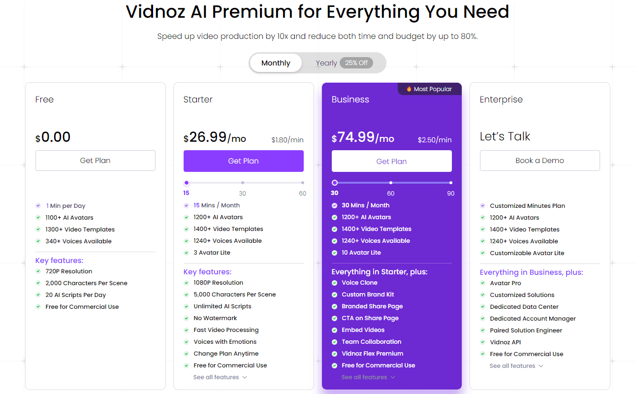 Note: Vidnoz offers a 7-day refund policy if you sign up for its 1-year subscription.