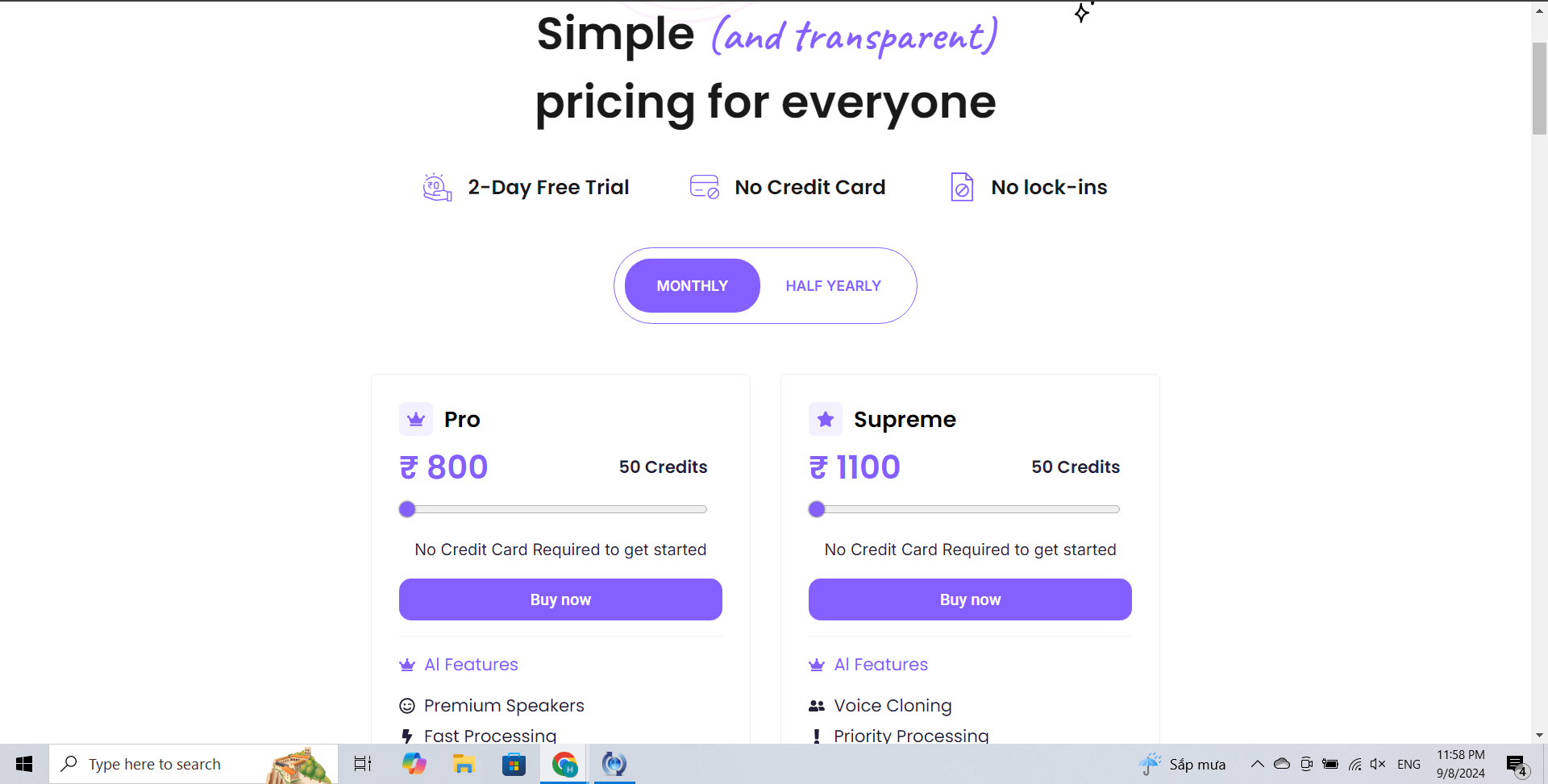 • Paid Plans: Dubverse Pro is ₹ 800 per month, Dubverse Supreme is ₹ 1100 per month
