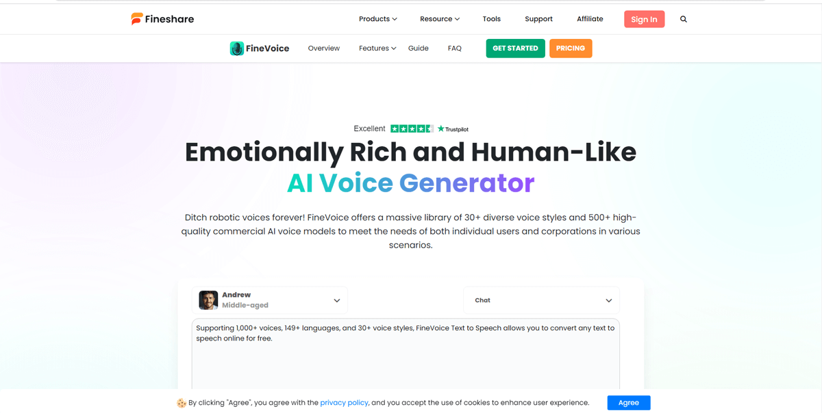 FineShare offers an AI voice generator platform with over 1000 natural-sounding voices in 149+ languages, including the Andrew Tate AI voice. The tool is designed to bring creative projects to life with captivating narrators, persuasive spokespersons, and dynamic character voices for various forms of multimedia content.