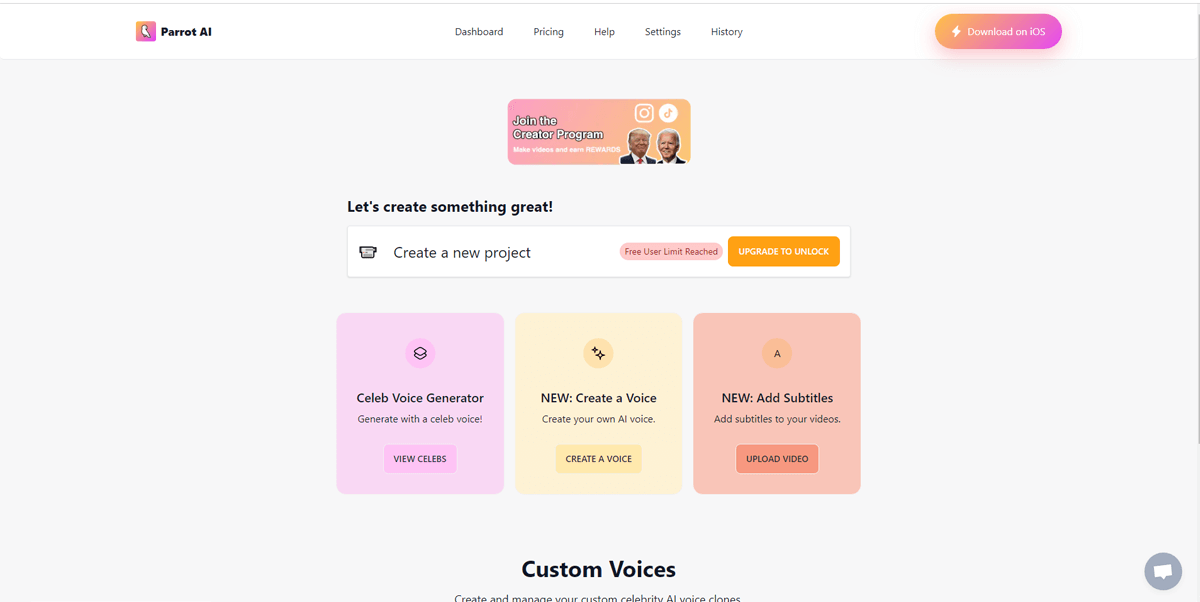 ✔ Suitable for multiple platforms (TikTok, etc.) ✔ Quick AI voice cloning in 30 secs ✔ Clone any voices with the “Customize AI Voice” feature |