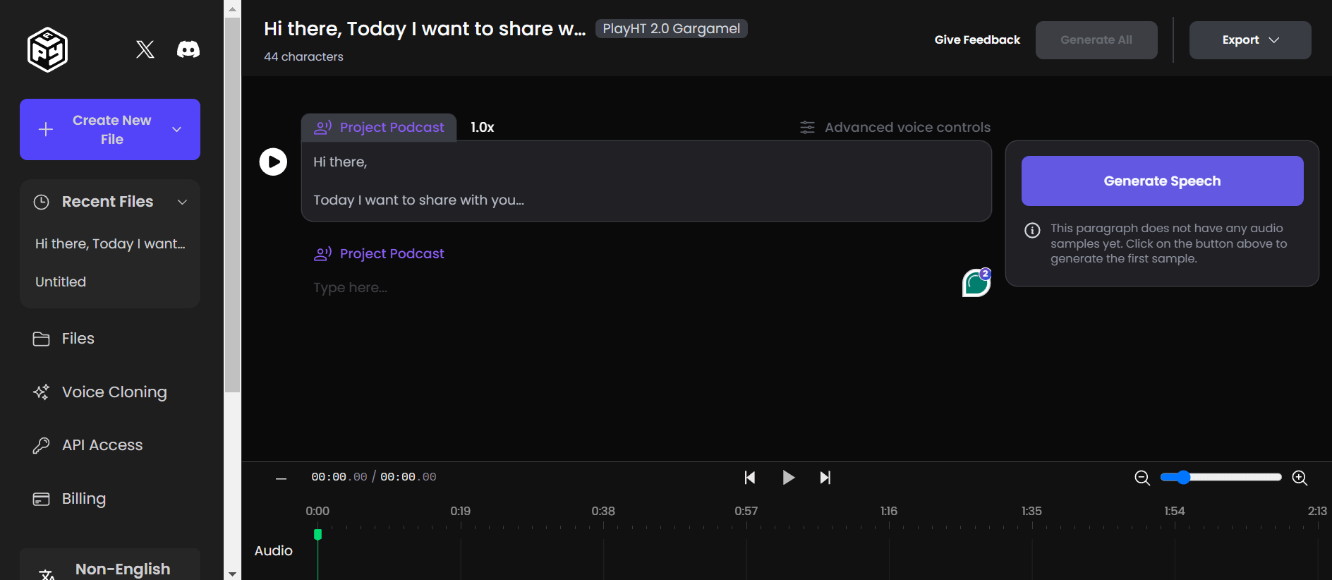Note: The better the quality and length of the audio sample, the higher the resulting AI voice clone’s quality will be.
