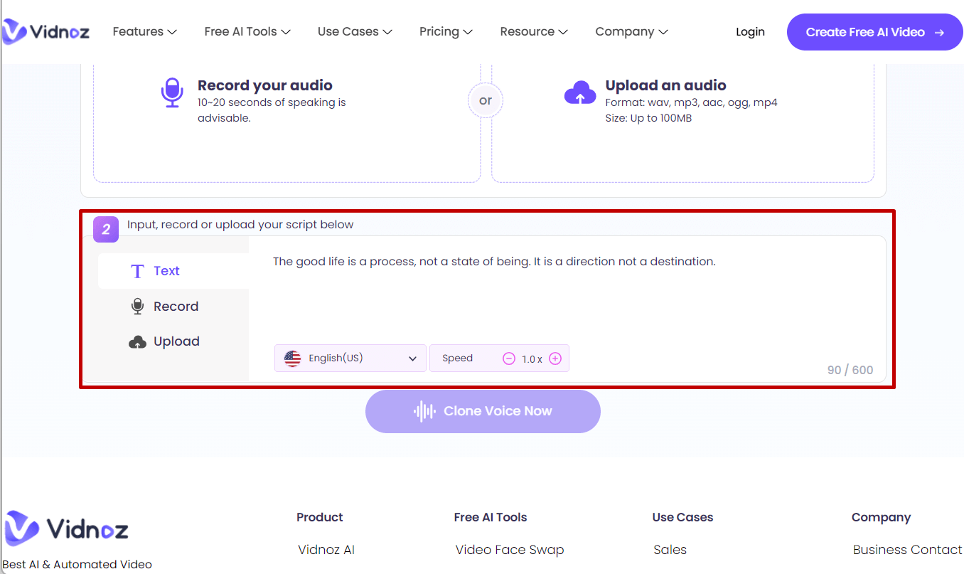 Step 5: Click “Clone Voice Now” and wait for the AI to finish
