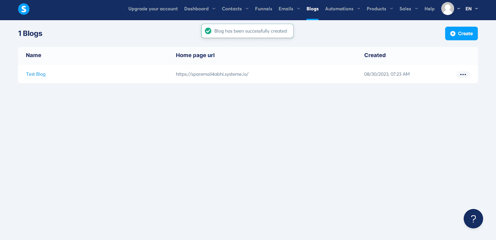 Systeme.io emerges as the optimal choice for those looking to embark on the journey of creating a blog. The simplicity of the process sets it apart, making it an accessible option even for individuals without coding expertise. The initiation is straightforward – users can navigate to the “Blogs” section in the header menu and initiate the creation of a new blog by selecting from a range of pre-designed templates.