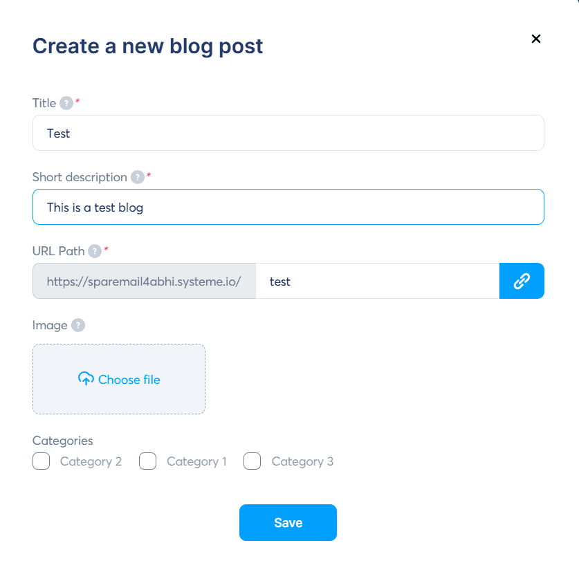 Consider the following example: You are managing a Blog that covers diverse topics such as: “fashion”, “sports” and “Recipes”. Systeme.io will help you organize this content into appropriate categories, and allow you to present this content in a structured way. Navigating this process is remarkably straightforward, aligning with the platform’s commitment to user-friendly functionality.