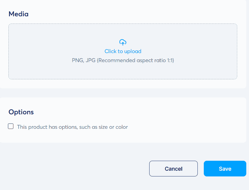 Continue scrolling down, and you’ll come across the choice to include an image. If the product offers various options, such as diverse sizes or colors, tick the “Options” box located towards the page’s end.