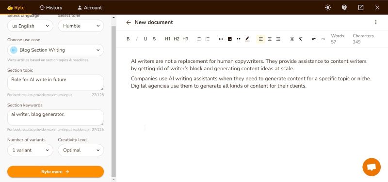 Rytr stands out as a highly sophisticated AI tool, offering a cutting-edge solution for swift and effective content creation in today’s market.
