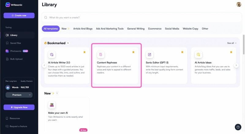 This tool proves to be a seamless solution for swiftly generating unique content in a matter of seconds. Whether you’re working with a concise sentence or looking to rephrase entire paragraphs, WriteSonic’s AI engine excels in the art of paraphrasing. It navigates through diverse document types, leveraging its understanding of grammar rules to swiftly deliver high-quality output devoid of errors or typos.