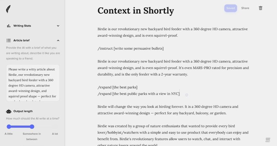 In the realm of AI-powered writing tools, ShortlyAI stands out by seamlessly blending machine-learning capabilities with a human-like comprehension of text. This fusion aims to deliver optimal results, ensuring that your content creation endeavors are met with precision and effectiveness. What sets ShortlyAI apart is its ability to factor in context and background information, a crucial element that enhances the overall quality and relevance of the generated content.