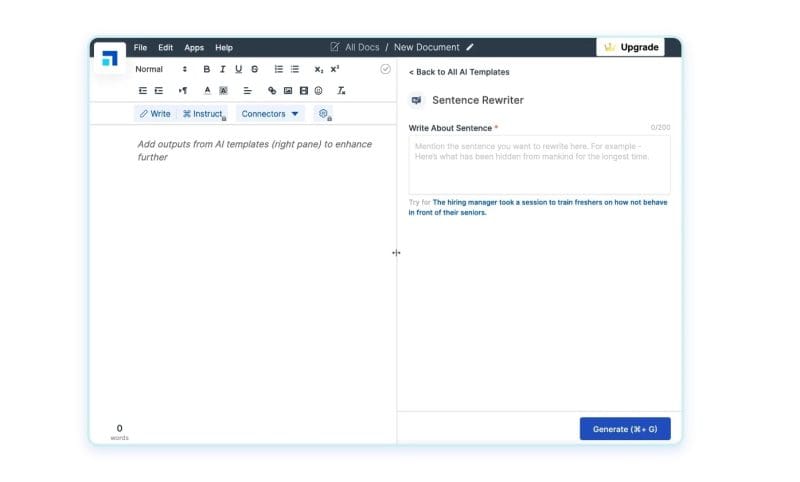 Consider this scenario: a user employs the rewriter’s capabilities to swiftly produce alternative versions of generated text or to rephrase an existing copy. Subsequently, this becomes a stepping stone for further refinement and improvement. It exemplifies how the amalgamation of an AI rewriter tool with other writing features amplifies the creative potential, enabling users to not only repurpose content efficiently but also embark on the journey of creating entirely new and improved iterations.